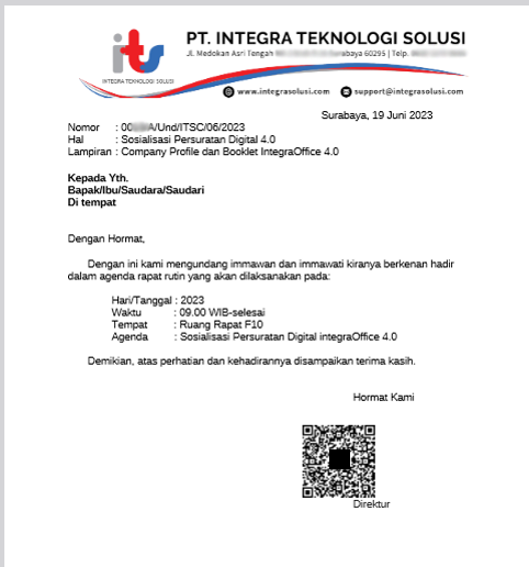 Salah satu keunggulan InOffice Persuratan adalah fitur tanda tangan digital dengan menggunakan QR Code. Hal ini memastikan keaslian tandatangan dan mempercepat proses penandatanganan surat. Dengan metode ini, integritas surat Anda tetap terjaga, dan Anda dapat dengan yakin mengirimkan surat kepada penerima.