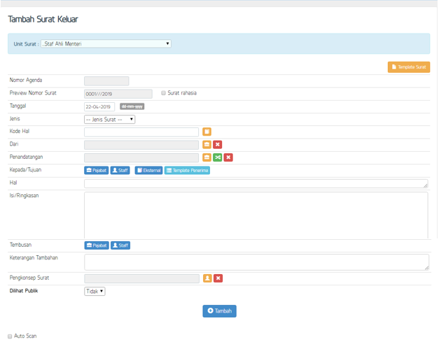 Fitur yang mempermudahkan pengguna ( operator surat) untuk membuat surat keluar, baik ke internal atau ke eksternal (luar instansi)