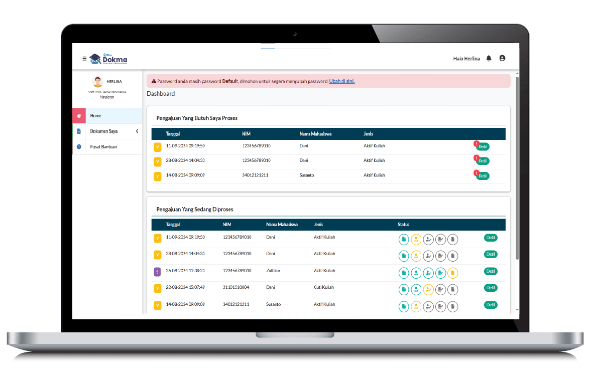 Dengan inOffice Dokma, mahasiswa dapat dengan mudah mengajukan surat tanpa harus khawatir tentang format, kehilangan dokumen, atau proses pengajuan yang berbelit-belit