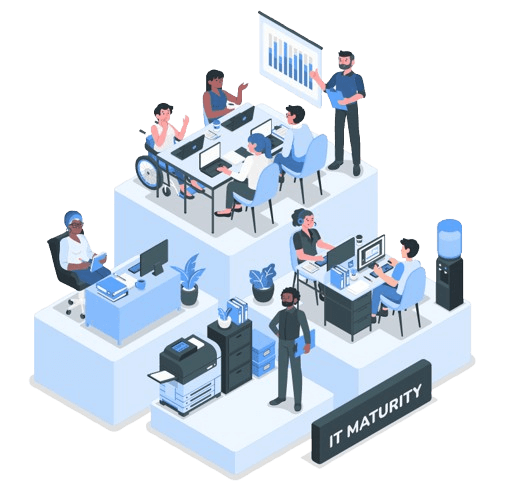 Kami menawarkan solusi lengkap untuk mengevaluasi dan meningkatkan kematangan TI di perusahaan Anda